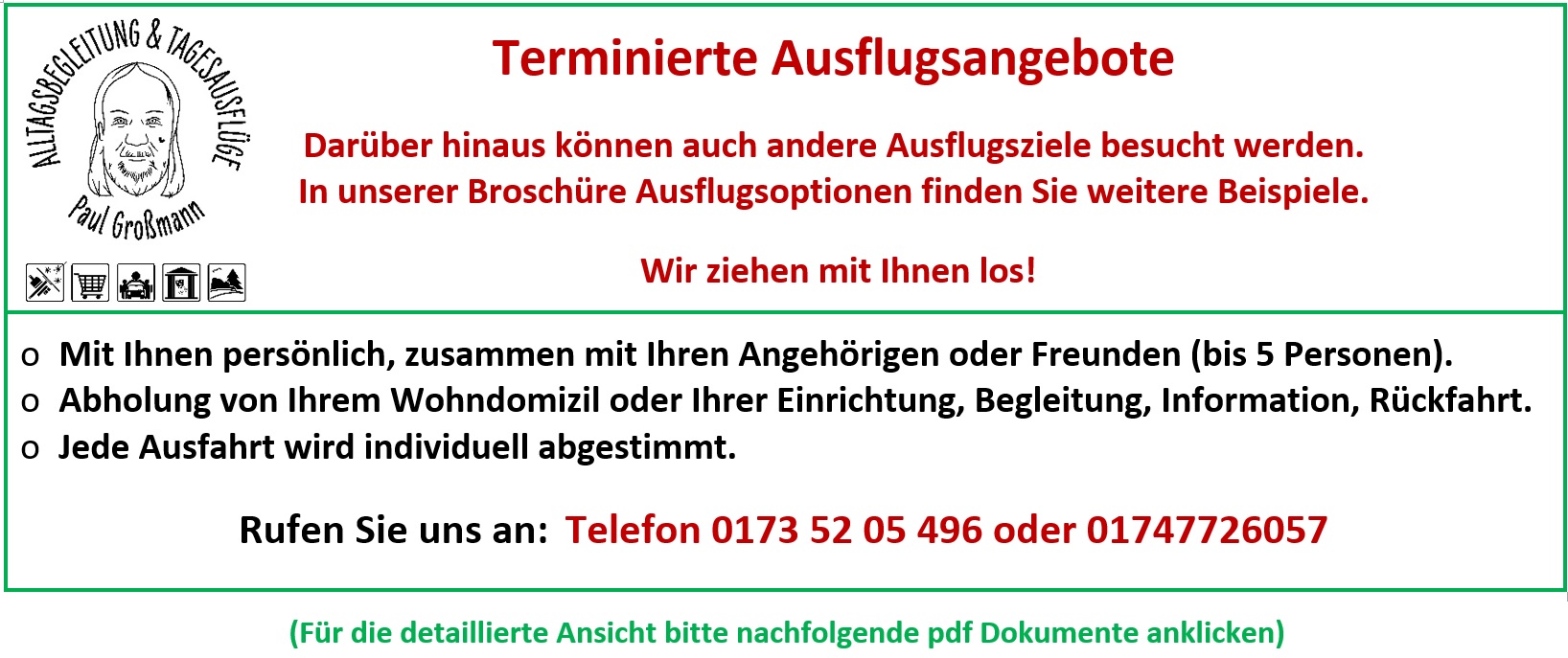 - gemeinsam in einer von uns organisierten Ausflugsgruppe,